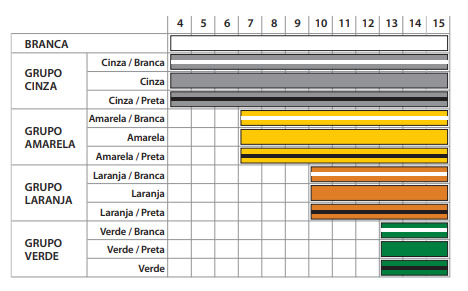 Sugestão de sistema de graus para praticantes entre 4 e 15 anos.